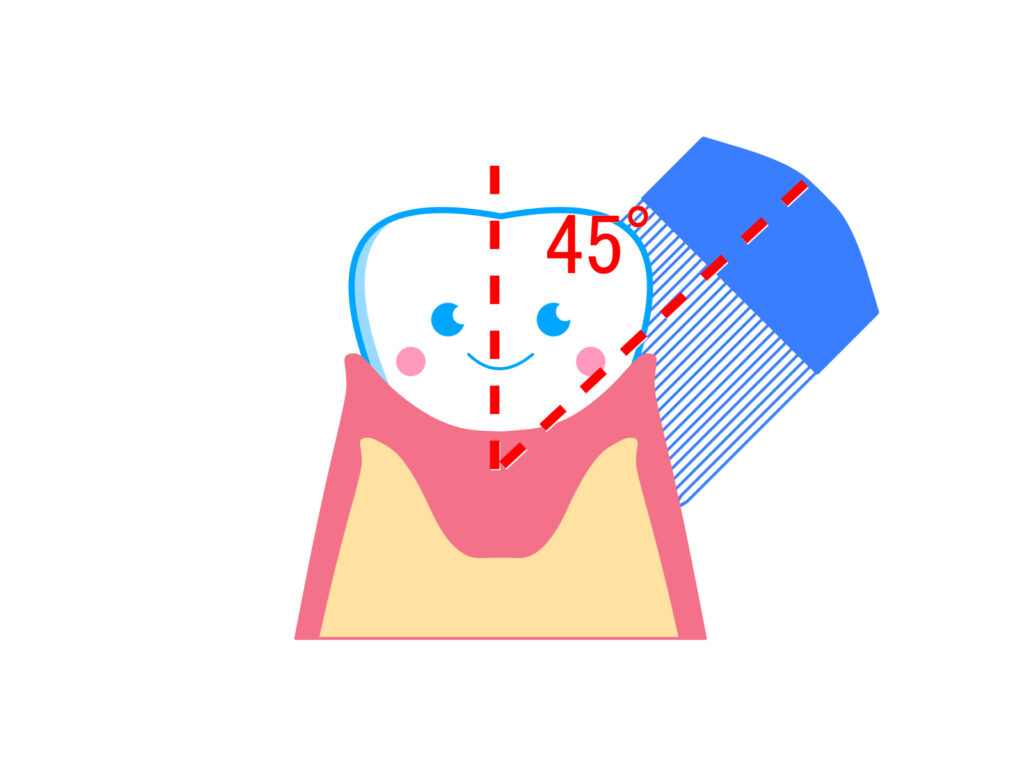 - 歯ブラシを45度くらい傾ける